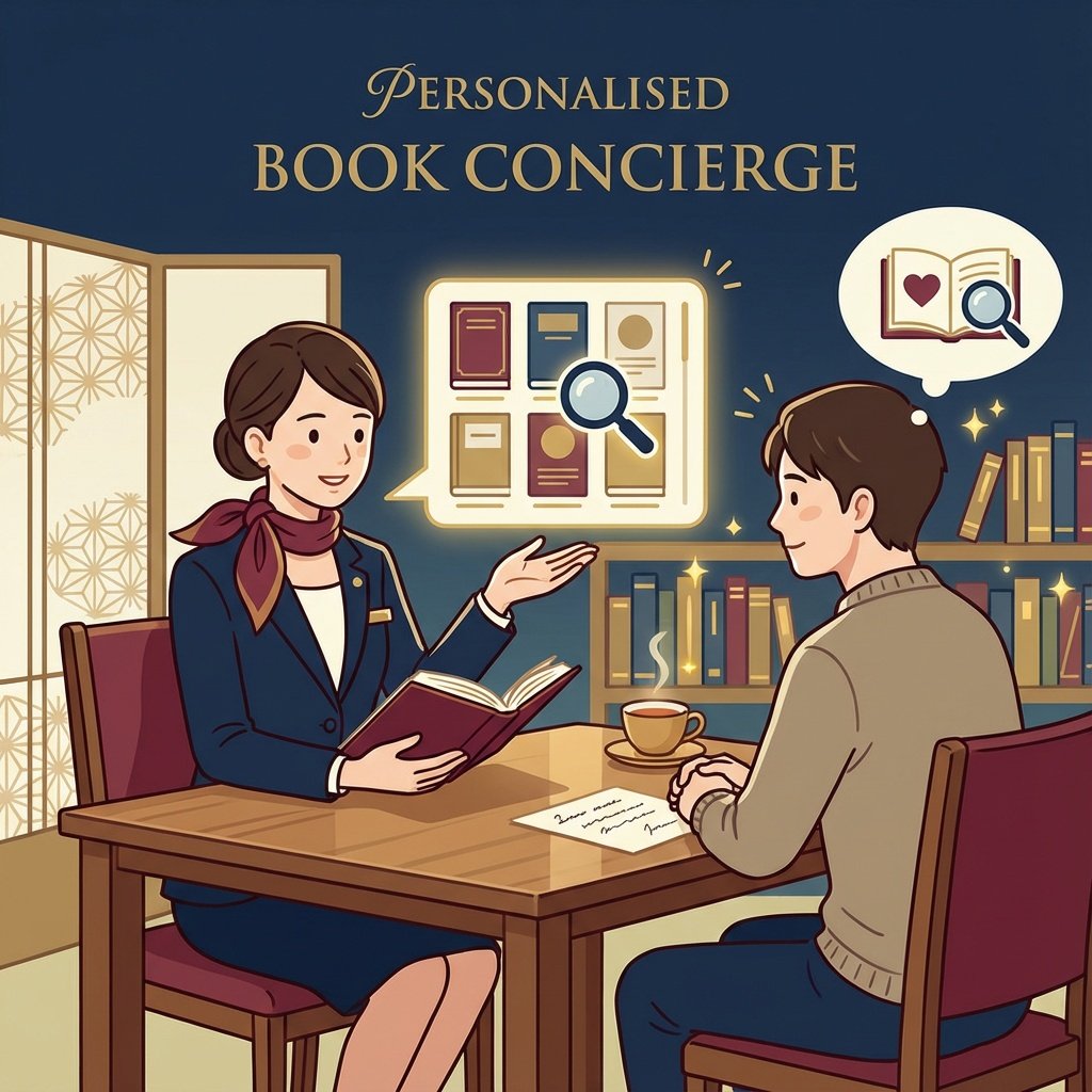 ブックコンシェルジュ・戸川識には、本棚を前にしたとき「この本が、この人に必要だ」と直感的にわかる特殊な感性があります。この感性と心理学・図書館学の専門知識を組み合わせることで、AIや一般的な選書サービスでは到達できない、あなただけの一冊を見つけることができます。
